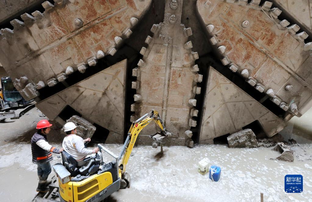 3月2日,施工人員在上海市域鐵路機場聯絡線工程現場清算基坑。
