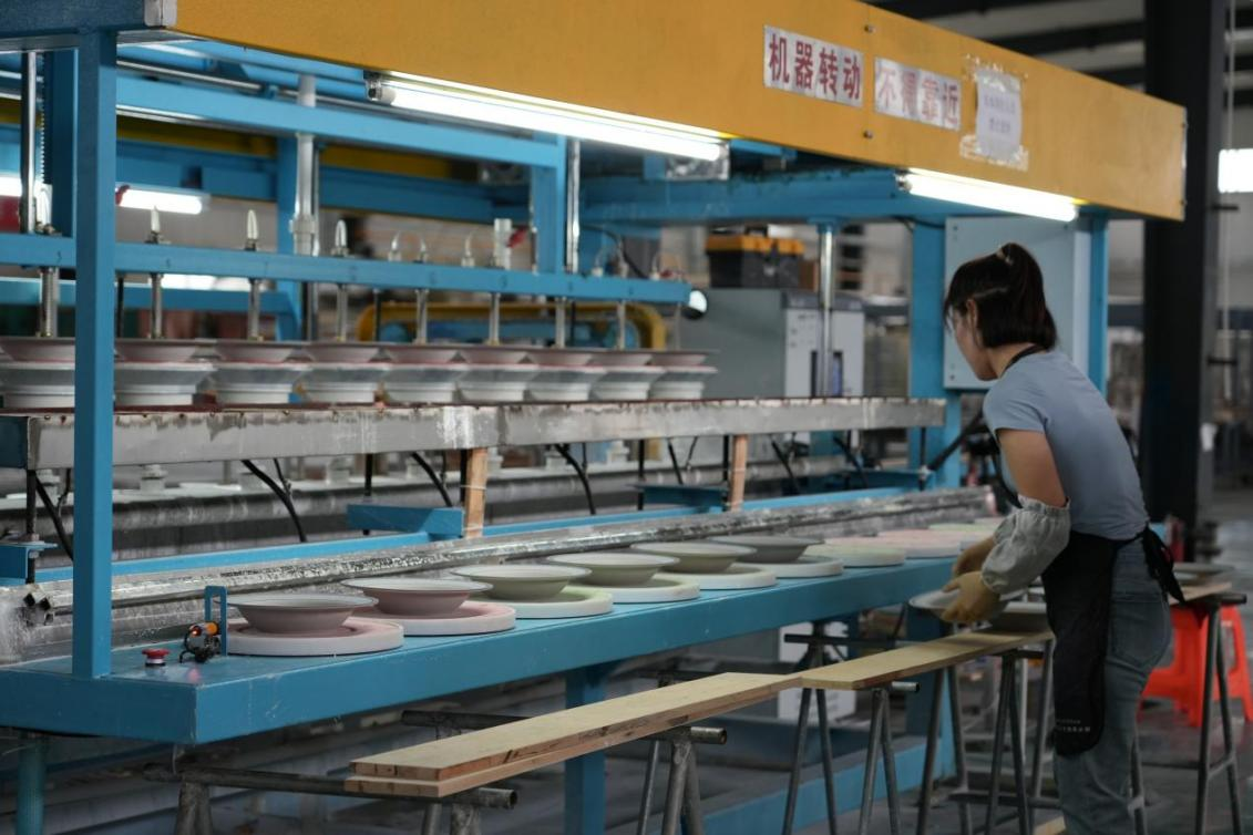一件優美的國禮瓷在工人手中出生(攝 王麗曼)
