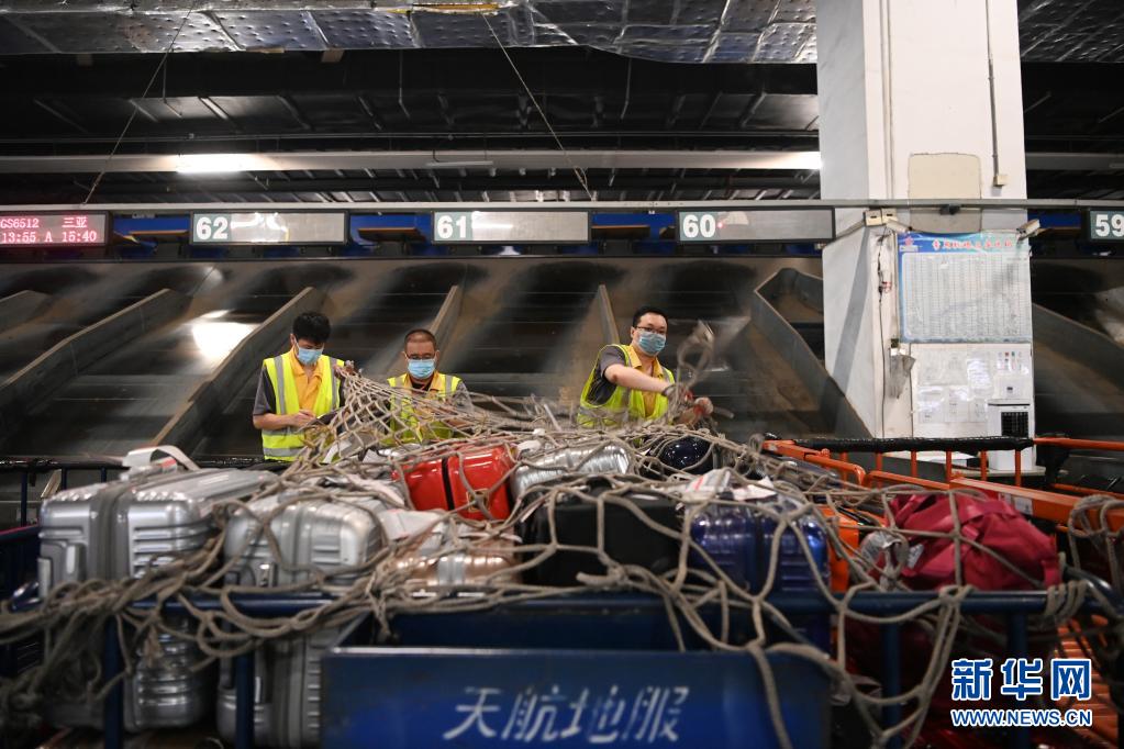 7機場接送包車月21日,在九人座包車天津機場接送濱海國際機場,天津航空任務人員進行行李分揀任務。