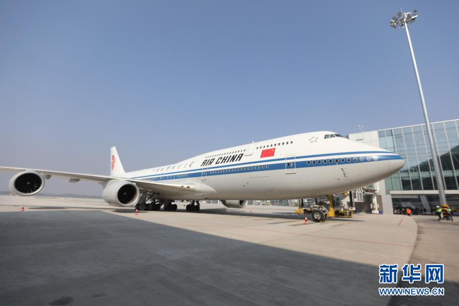 1月22日,參加試飛儀式的中國國際航空股份無限公司客機停靠在成都天府國際機場。