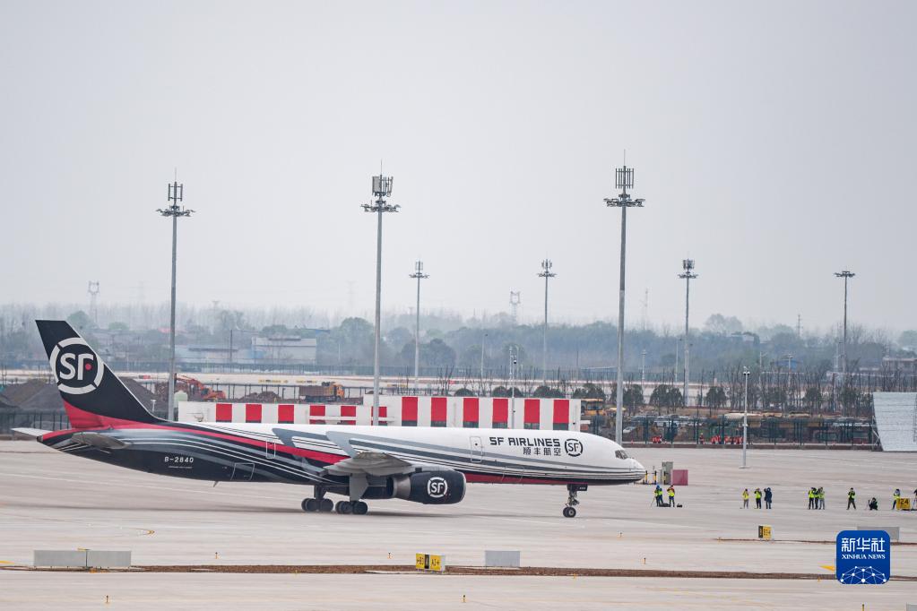 3月19日,試飛的貨桃園機場接送運飛機在鄂州花湖機線上預約機場接送場滑行。