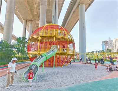 山東青島市市北區跨海年夜橋高架橋下的公園。 閆 婧攝