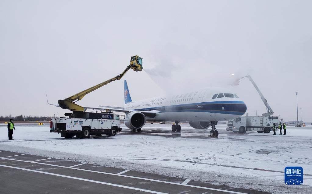 在機場接送長春市龍嘉機場,南邊航空吉林松山機場接送分公司機場送機職工進行飛機場接送推薦機除冰作業(1線上預約機場接送1月7日攝)。