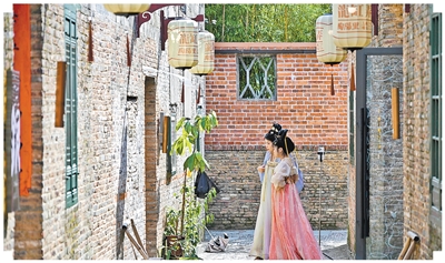 江西景德鎮,游客在陶陽里汗青文明街區游覽。